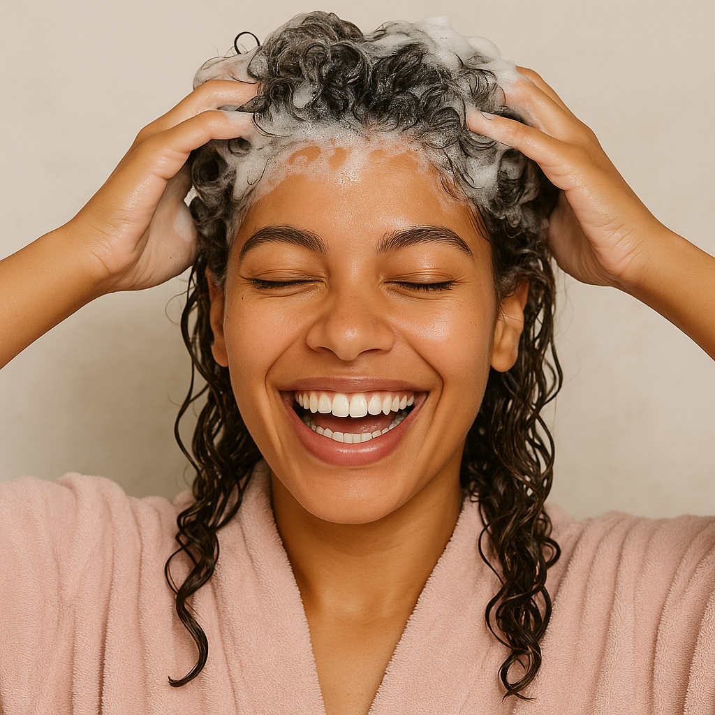 “Tengo el cuero cabelludo sensible y este shampoo me calmó un montón la picazón. Es muy suave y siento el pelo más fuerte.” – Camila R.